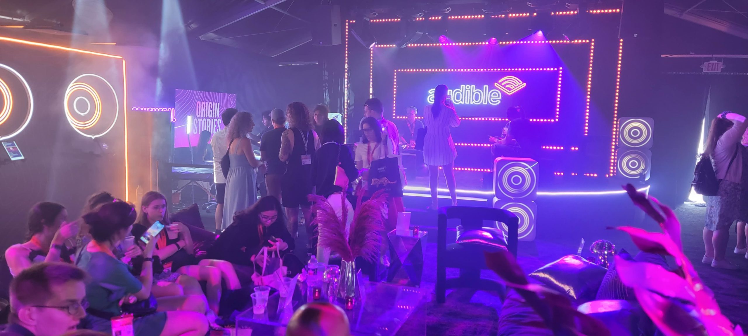 The audiobook giant had a strong presence at SXSW this year, and was a personal favorite of mine.  The Audible party was a celebration of Origin storytelling. They offered free plant based ink tattoos that fade after 1-3 years from Ephemeral Tattoos – spoiler I got one, a Disco Ball.